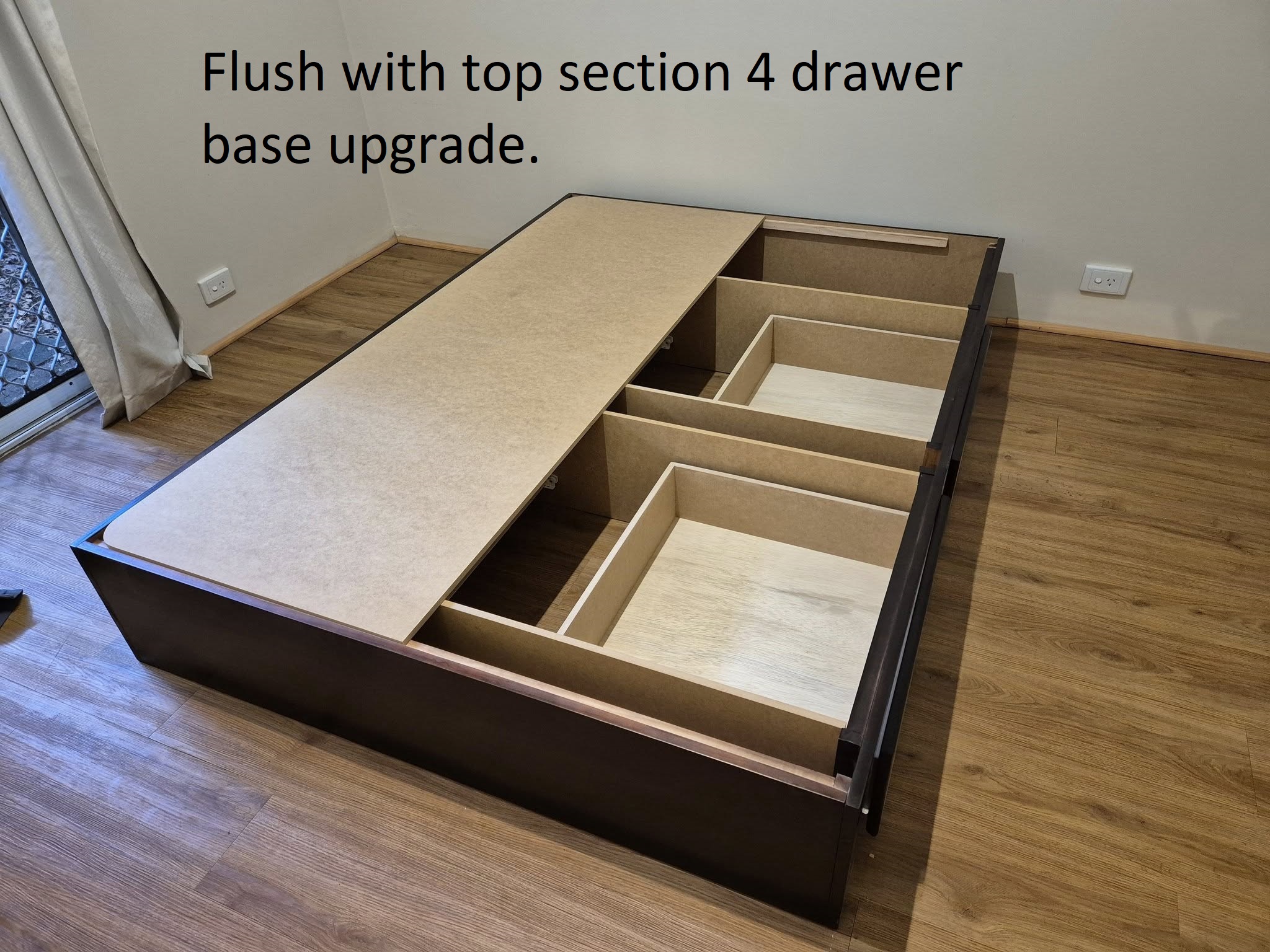 Drawers are off set from the head end of the bed so they can still open with a side table next to the waterbed.