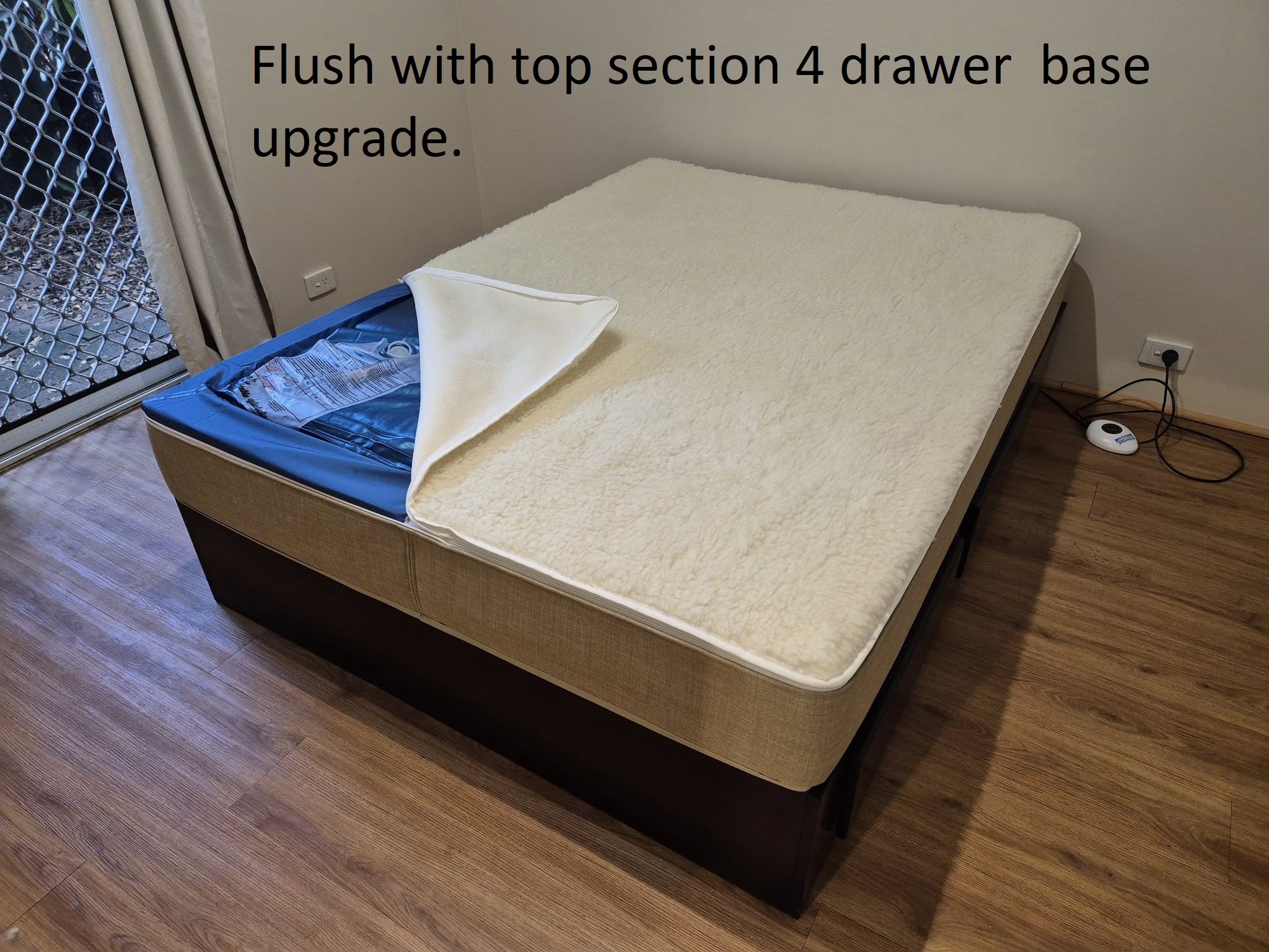 Munro Soft-Sided Pedestal Base waterbeds include a zip on 100% Wool Cover that is a 800 gram rating or Quilted Cover, Heater, Liner, water conditioner, Deck, Pedestal and mattress of your choice. We use Dunlop Endro Foam in manufacture, this is a superior quality non memory foam not found in other brands. Our pedestal base units aren’t just painted chipboard but are made from kitchen grade laminate that can be scrubbed and cleaned without fading.